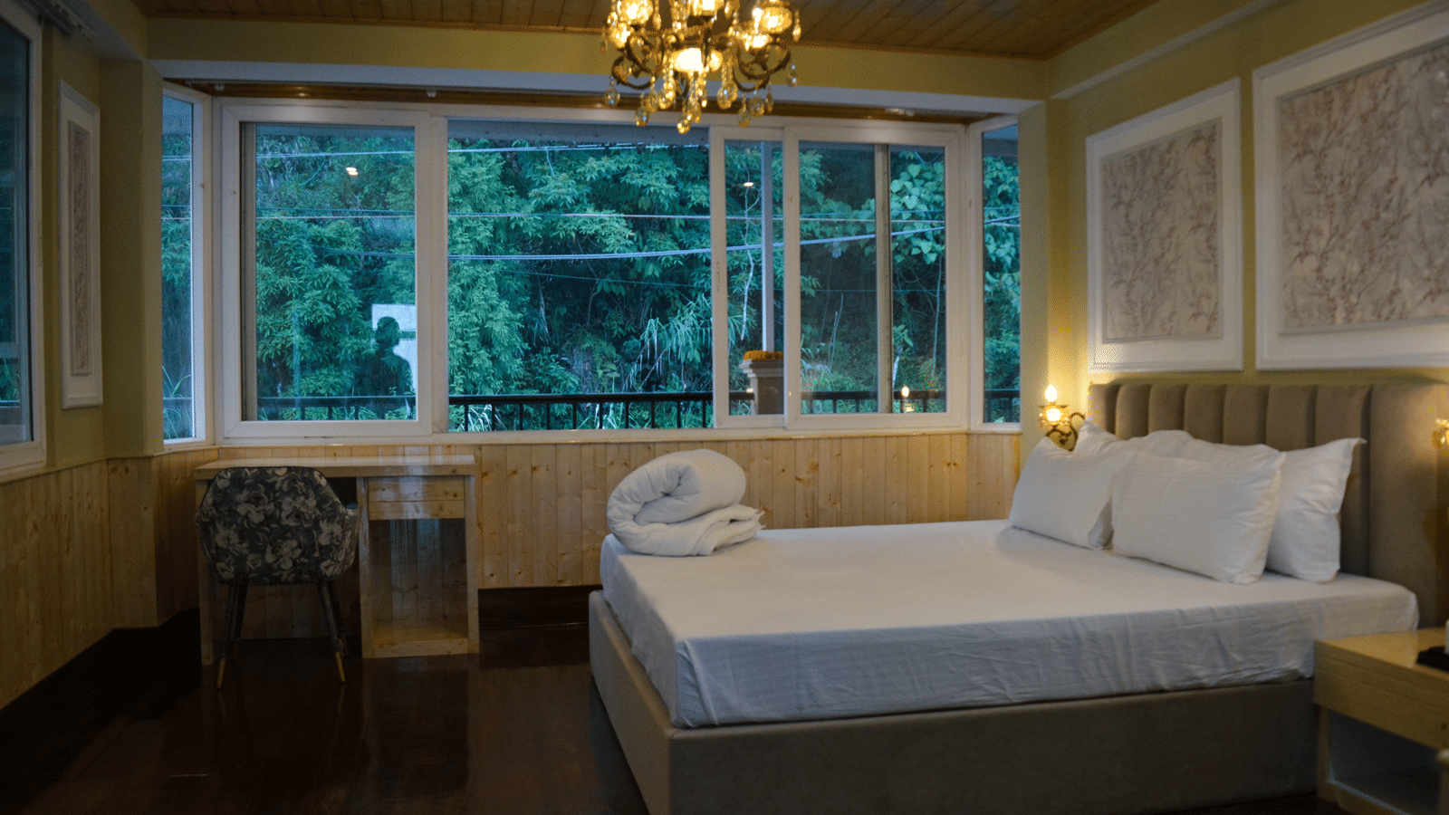 Book now for an unforgettable stay at Himalayan Eagle Room offering 463 sq. ft. of refined luxury with valley views, a queen bed, and modern comforts.